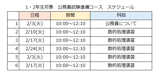 COURSE【期間限定申込】1・2年生向け公務員試験準備講座