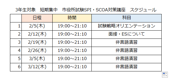 COURSE【期間限定申込】3年生対象 短期集中!市役所試験SPI・SCOA対策講座