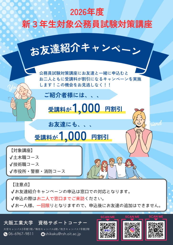 新3年生対象の公務員試験対策講座にお友達と一緒に申込むと