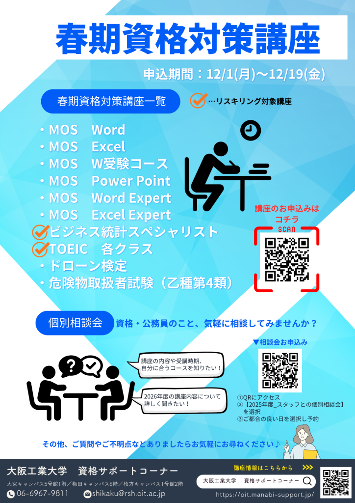 【ご案内】★春期 資格講座の申込受付が12/1(月)からスタート★