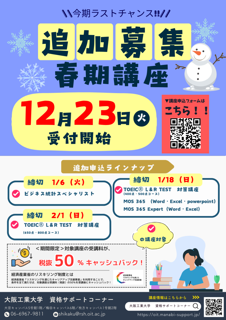 【2025年度最後のチャンス】春期資格対策講座 二次申込受付スタート!